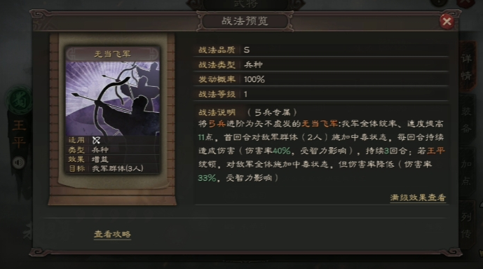 兵书的选择并非孤立,必须与阵容搭配和战法携带通盘考虑。邓艾的兵种适性以枪兵为最擅长的领域,骑兵和弓兵次之,这决定了他在阵容中通常服务于魏国枪兵体系或混搭阵容。在阵容中,他常与高爆发武将搭配,例如徐晃、张辽等,利用他提供的长时间震慑控制为队友创造安全的输出环境。在战法搭配上,为了最大化控制链,通常会为他配备如纵兵劫掠、挫锐、出其不意等其他控制或减益战法。在这种情况下,兵书选择以治击乱的收益会非常高。如果队伍缺乏续航,为他配备坐守孤城等治疗战法时,则援其必攻的适配性会提升。他的传承战法文武双全虽然是一个强力的被动增益战法,但通常建议由其他更需要属性叠加的武将携带,邓艾本人应专注于发挥其控制专长。