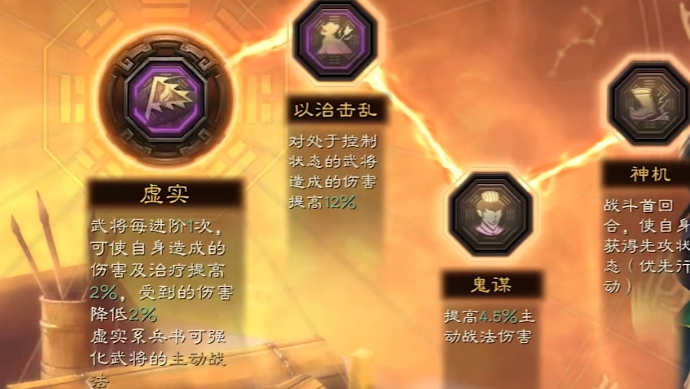 邓艾在三国志战略版中取胜的关键,在于兵书选择需紧密围绕其自带战法暗度陈仓构建,通过强化控制效果与提升战法稳定性来奠定胜局。其战法拥有对敌军单体造成谋略伤害并施加两回合震慑的强大效果,但作为需要准备一回合的主动战法,存在被打断的风险。兵书的核心思路是保障并优化这一核心控制的发动。在众多兵书系列中,虚实系是最主流且契合邓艾战术定位的选择。其中疾战突围被视为必选项,它能提供概率使需要准备的主动战法跳过准备回合立即发动,这对于暗度陈仓而言至关重要,能有效避免准备期间被敌方控制技能干扰,确保震慑效果能够及时打出,从而抢占战斗先机。